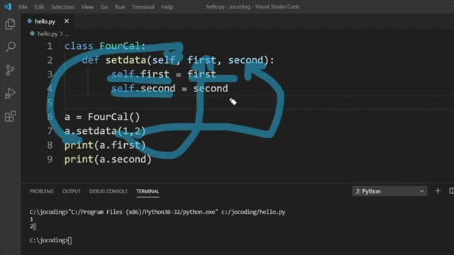 - 예시: a.set_data(4, 2)를 호출하면 a 객체가 self로 전달되고, 4는 first, 2는 second로 전달되어 객체 변수에 저장된다.