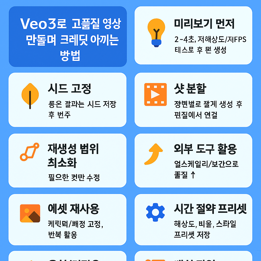 Veo3를 활용하여 고품질 영상을 만들면서 크레딧을 아끼는 구체적인 방법은?