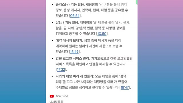 - 기능 설명: 긴 유튜브 영상의 핵심 내용을 타임라인별로 간단하게 요약해 준다.