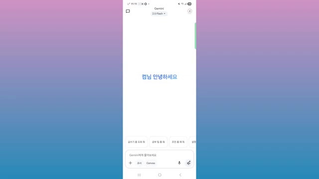 - 제미나이 앱 하단의 마이크 모양 버튼을 누른다.