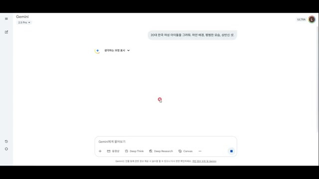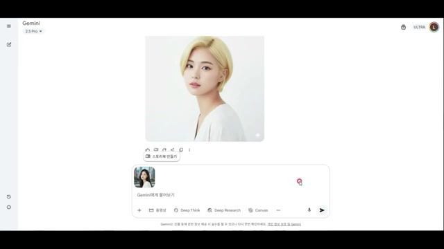 - 구글 Gemini에 접속하여 "20대 한국 여성 아이돌을 그려 줘 하얀 배경의 평범한 모습에 상반신 샷"이라는 프롬프트로 이미지를 생성한다.