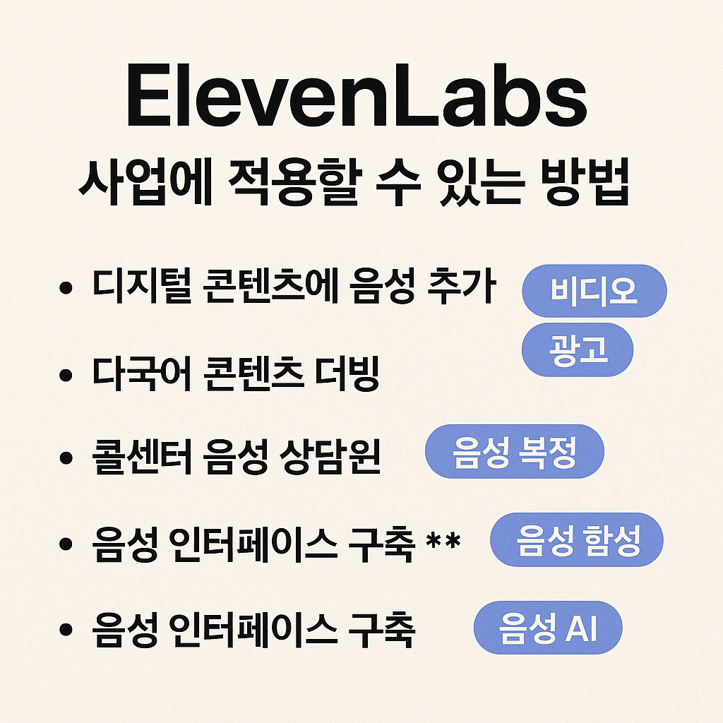 일레븐랩스(ElevenLabs)를 활용하여 사업에 적용할 수 있는 방법은 무엇인가요?