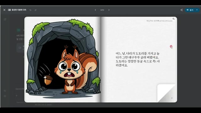 - 자동 스토리 및 그림 생성: 제미나이가 자동으로 스토리를 구성하고, 각 페이지에 그림과 글을 나누어 작성한다.