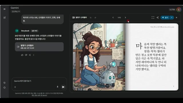 - 혁신적인 스토리북 생성 기능: 구글 제미나이가 스토리북을 만들고, 해당 스토리북의 글자를 읽어주는 기능까지 추가되었다.