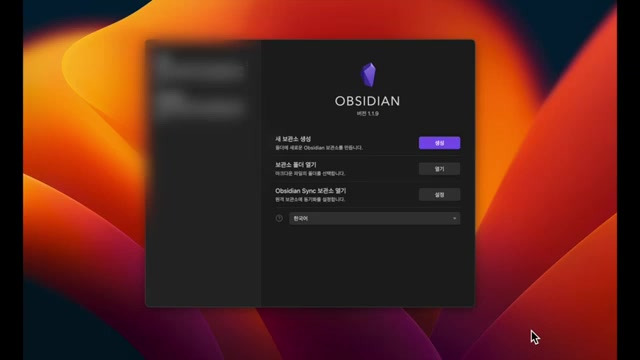 - 옵시디언은 로컬 파일 기반으로 작동하므로, 작업할 로컬 폴더를 결정해야 한다.