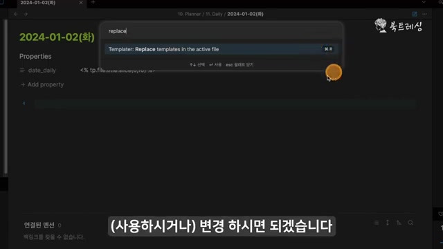 - 참고: 템플레이터 실행 단축키가 설정되지 않았다면 cmd+P를 눌러 'replace'를 검색하여 설정할 수 있다.
