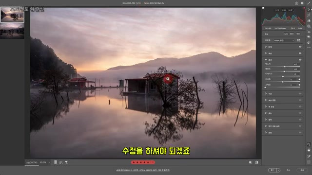 슬라이더 바 조절: 히스토그램 아래에 있는 슬라이더 바를 이용하여 노출, 밝은 영역, 어두운 영역, 흰색 계열, 검정 계열 등을 미세하게 조절하는 것을 권장한다.