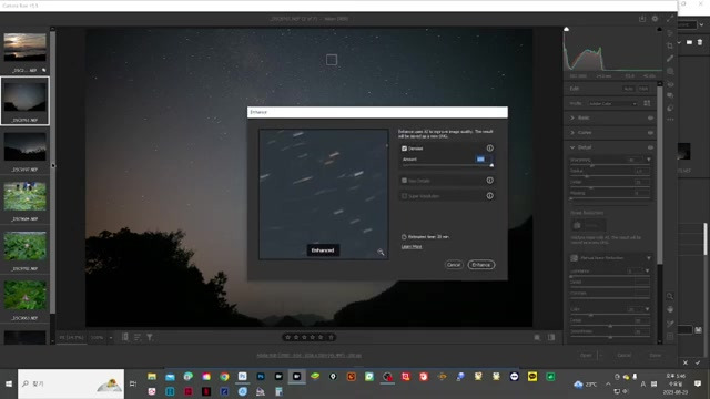 'Enhance'를 실행하면 20분 동안 노이즈를 제거한 후, DNG 파일로 저장된다.