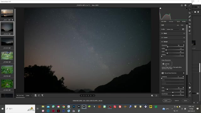 2. ACR에서 RAW 파일 노이즈 제거 실습 및 'Denoise' 개념 설명