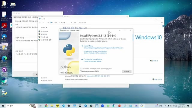 - 파이썬 3.11.3 버전을 새로 설치하며, 이때 환경변수 설정을 체크하고 설치를 진행한다.